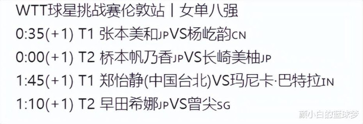 女单八强目前已经出炉,日乒四人(张本美和、桥本帆乃香、早田希娜、长崎美柚);国乒只剩下杨屹韵一人,除此之外还有巴特拉、郑怡静、曾尖三人,日乒四人围剿杨屹韵一人,没有国乒女单一队的成员日乒真的是一骑绝尘的节奏。